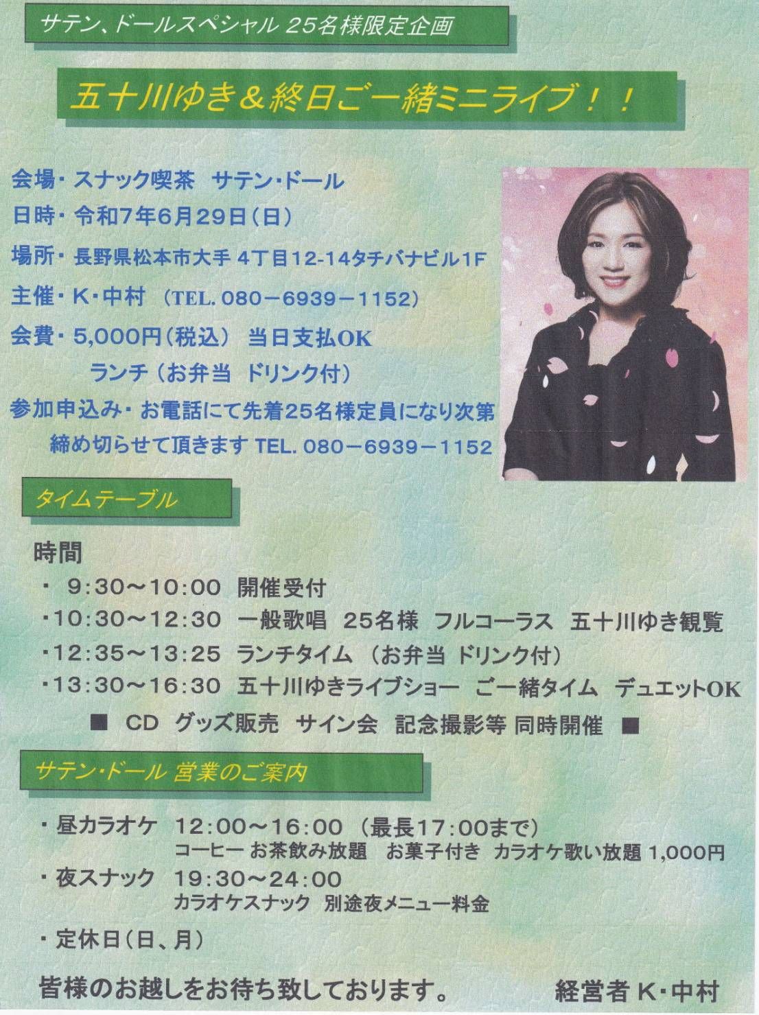 ・13:30〜16:30 五十川ゆきライブショー ご一緒タイム デュエットOK